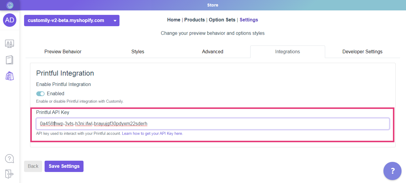 To link your Customily App with your Printful account
