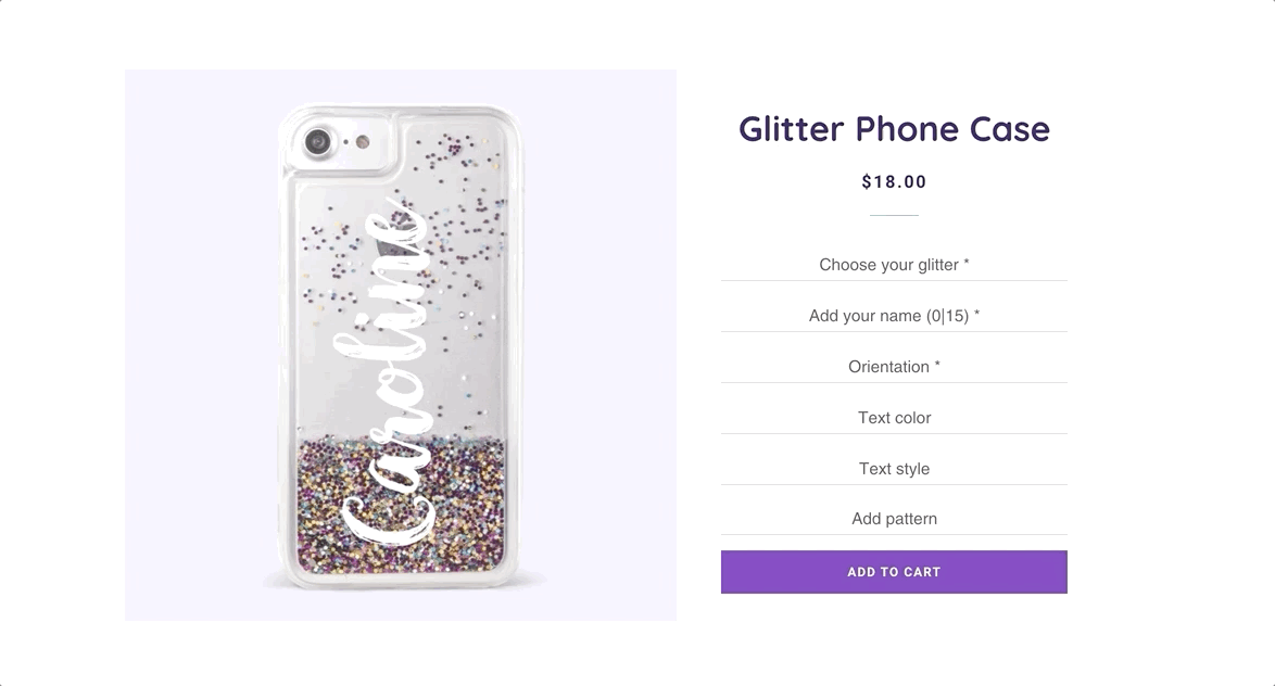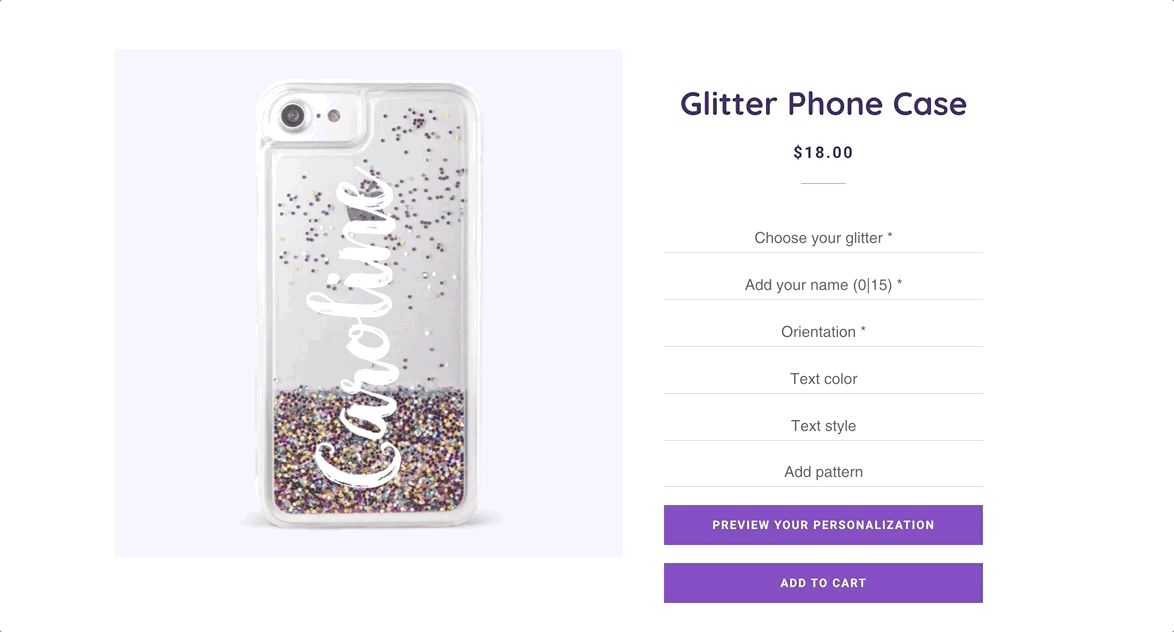 When customers interact with the options, the preview replaces the product image and updates in real time.